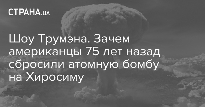 75 лет назад, 6 августа 1945 года, американцы по приказу своего президента Гарри Трумэна сбросили ядерную бомбу "Малыш" на японский город Хиросима. Он стал целью, поскольку в 1945 году там находился второй Генштаб Японии и генштаб Военно-Морских сил.