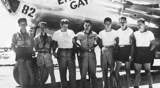 Бомбу нес бомбардировщик под командованием одного из лучших пилотов США - 30-летнего Пола Тиббетса. Он дал борту имя Enola Gay  - в честь матери. Самолет вылетел с базы на острове Тиниан Марианские острова).