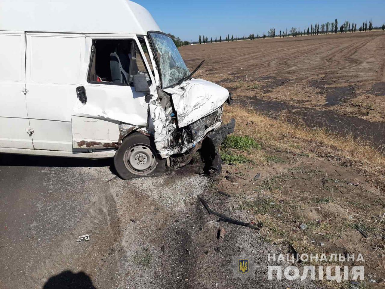 В районе города Скадовск в Херсонской области легковой автомобиль столкнулся с грузовым микроавтобусом, в результате чего три человека погибли.