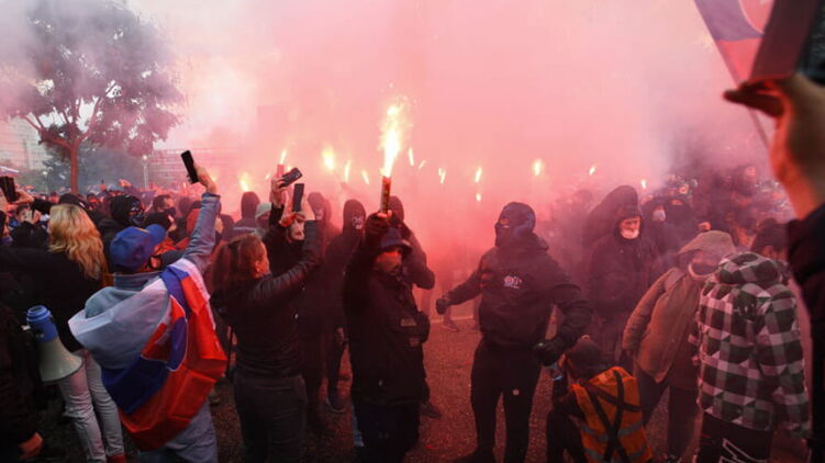 Напомним, вчера в Праге митинг футбольных и хоккейных фанатов без масок перерос в столкновения с полицией.