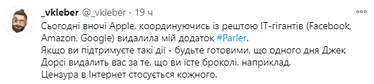 После того как Трамп и его сторонники перешли в Parler, Apple и Google удалили соцсеть из своих магазинов, чем вызвали новую порцию негативной реакции от авторов сервиса и, в частности, от украинского программиста.