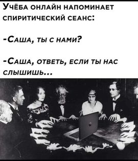 Некоторым родителям не хватает слов, чтобы описать реалии первых дней на дистанционном обучении. Они присылают в группу забавные фотожабы, в которых учебу онлайн сравнивают со спиритическим сеансом.