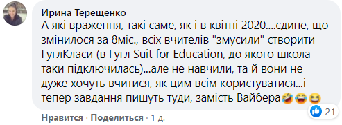 Есть вопросы и к учителям, которые создали классы в Гугле, но с весны так и не обучились в них работать, поэтому по привычке просто пишут туда задания, как при первом карантине в апреле писали задания в Viber.