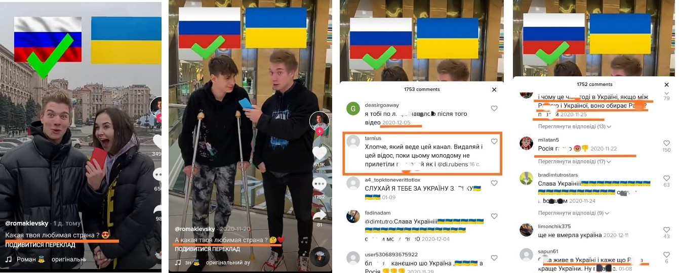 Популярная киевская блогерша Таисия Онацкая (Маламан), снимающая ролики под ником di.rubens, подверглась травле и угрозам националистов после того, как с ней записали блиц-опрос для TikTok в центре Киева. Ей предлагалось выбрать из двух стран одну куда бы ей хотелось бы поехать. Девушка несколько раз отдавала предпочтение России.