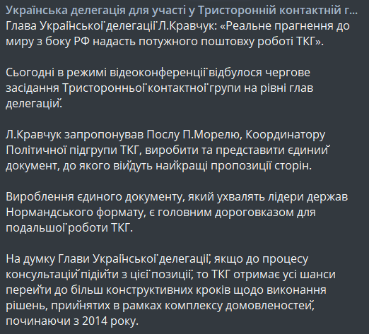 Формат же ТКГ требует детального обсуждения этого и других планов. Чего бы Украине, конечно, не хотелось - ввиду явного несоответствия ее предложений Минским соглашениям.