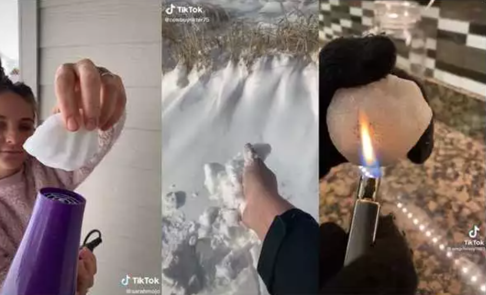 На одном из видео пользователь TikTok под ником sarahmojo использует фен, чтобы растопить снег, однако на нем видно, что он не тает. Этот ролик набрал уже 289 тысяч просмотров.