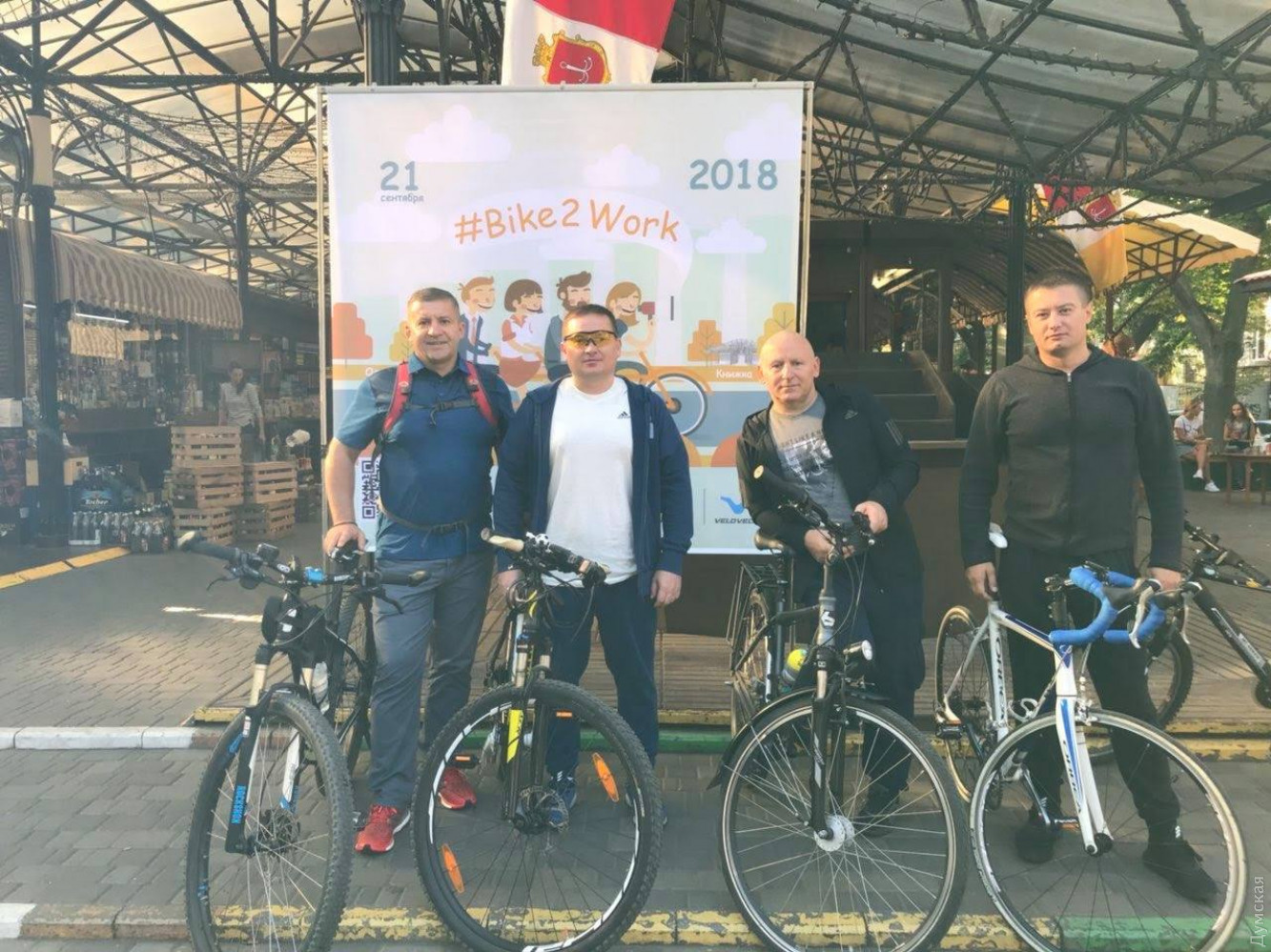 Попревич - второй справа, участник флешмоба "Bike2Work Odessa". Фото: Думская