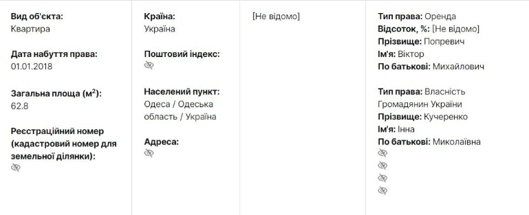 В Одессе он арендует квартиру площадью 62.8 кв.м у Инны Кучеренко. При этом местом регистрации судьи выбрано общежитие территориальной громады одесского горсовета.