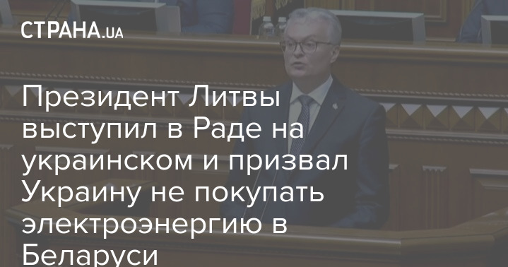 Президент Литвы выступил в Раде на украинском и призвал Украину не покупать электроэнергию в Беларуси