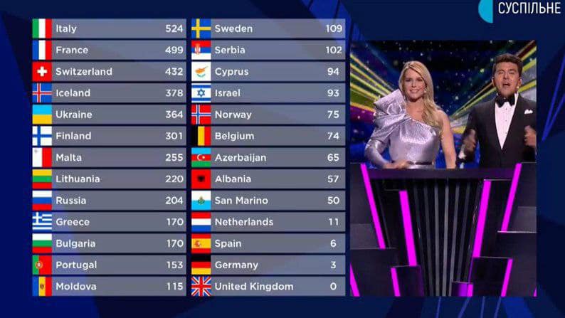 Великобритания впервые в истории конкурса получила 0 баллов и от жюри, и от зрителей.