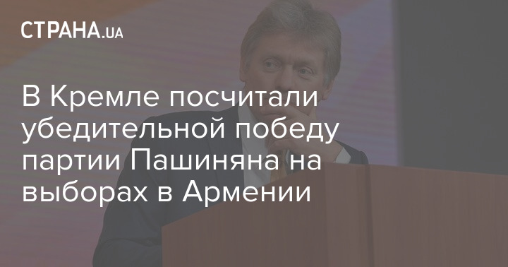 В Кремле посчитали убедительной победу партии Пашиняна на выборах в Армении