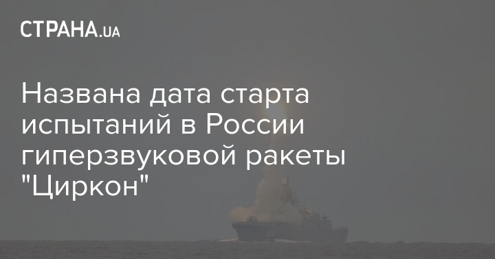 Названа дата старта испытаний в России гиперзвуковой ракеты "Циркон"