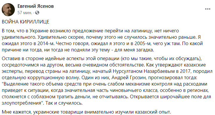 Журналист Евгений Ясенов рассказывает, что в Казахстане при переходе на латиницу началась волна коррупции.