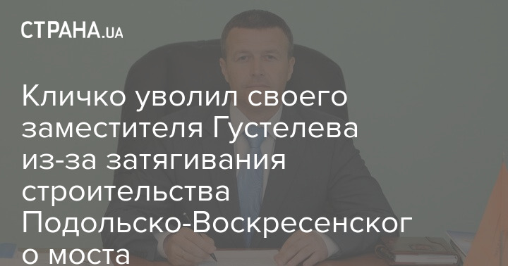 Мэр Киева Виталий Кличко уволил заместителя главы КГГА Александра Густелева. Причиной этого решения он назвал затягивания работ по завершению строительства Подольско-Воскресенского мостового перехода.