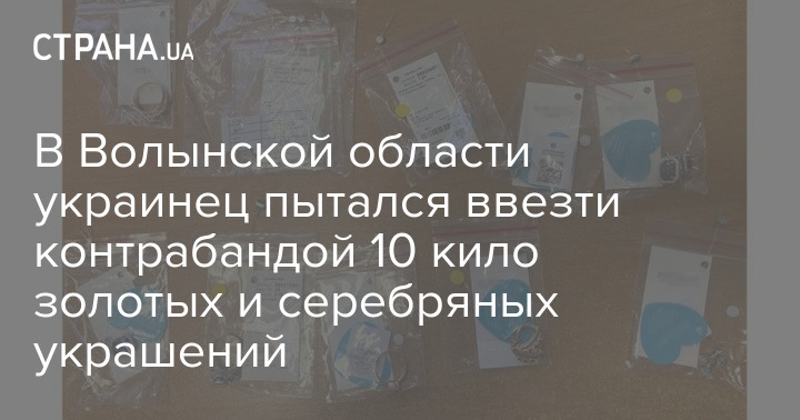 Житель Волынской области пытался ввезти в Украину 10 кг ювелирных изделий из России. Источник: Facebook/Погранслужба Украины