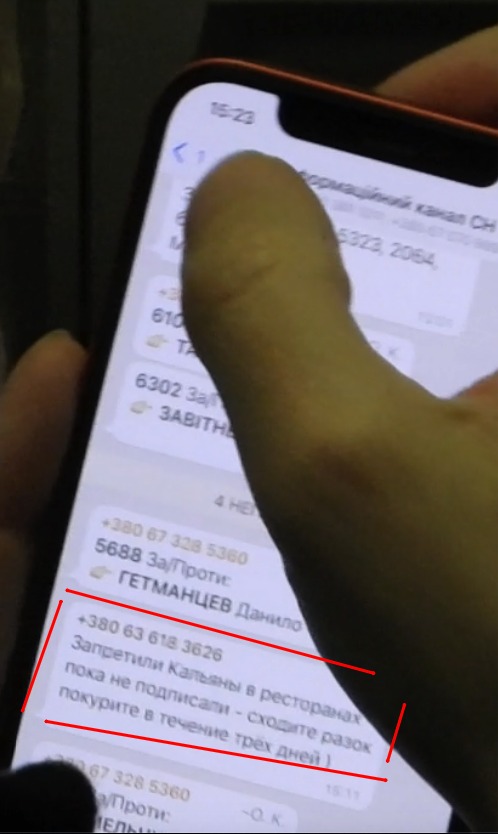 После того, как закон приняли, в чате "слуг народа" в Телеграме нардепы стали советовать друг другу успеть покурить кальяны в ресторанах, пока запрет не вступил в силу. Фото переписки обнародовал журналист Андрей Дзиндзя.
