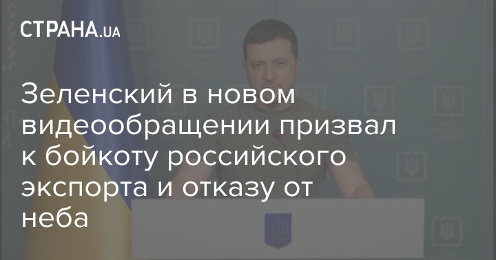 Зеленский в новом видеообращении призвал к бойкоту российского экспорта и отказу от неба