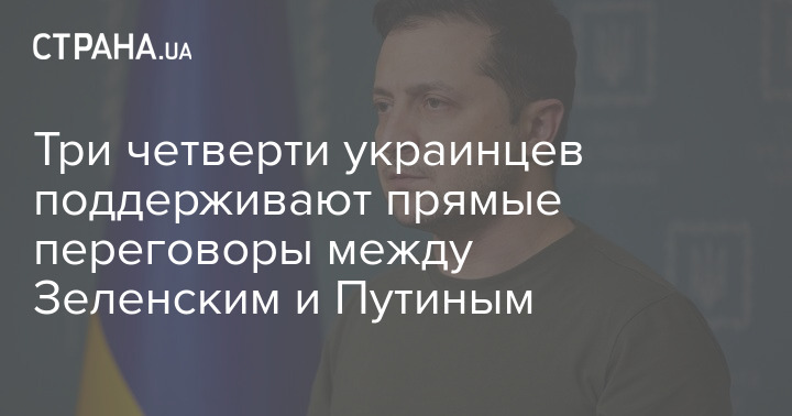 Три четверти Украинцев - 74% респондентов - опподдерживают прямые переговоры президента Украины Владимира Зеленского с президентом России Владимиром Путиным о том, чтобы прекратить войну. Такую статистику приводит социологическая группа "Рейтинг" по результатам опросов общественного настроения 18 марта.
