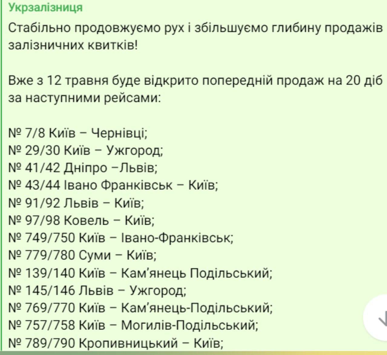 Уже с 12 мая будут открыты предварительные продажи на 20 суток по следующим рейсам: