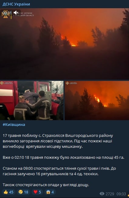 09:51 Ночью горел Чернобыльский лес. Об этом сообщают в ГСЧС.