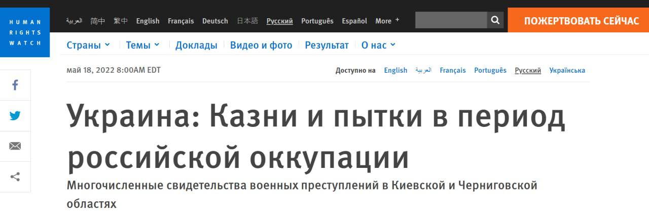 "Эти злоупотребления в отношении гражданских лиц являются очевидными военными преступлениями, которые должны быть незамедлительно и беспристрастно расследованы", — заявил заместитель директора HRW по Европе и Центральной Азии Георгий Гогия.