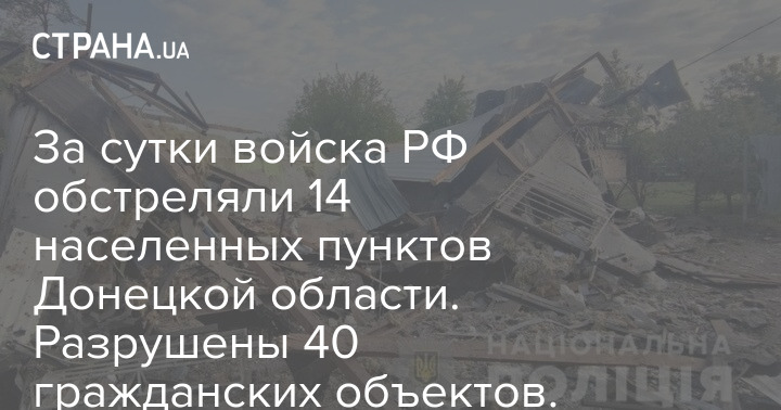 За сутки войска РФ обстреляли 14 населенных пунктов Донецкой области. Разрушены 40 гражданских объектов. Фото