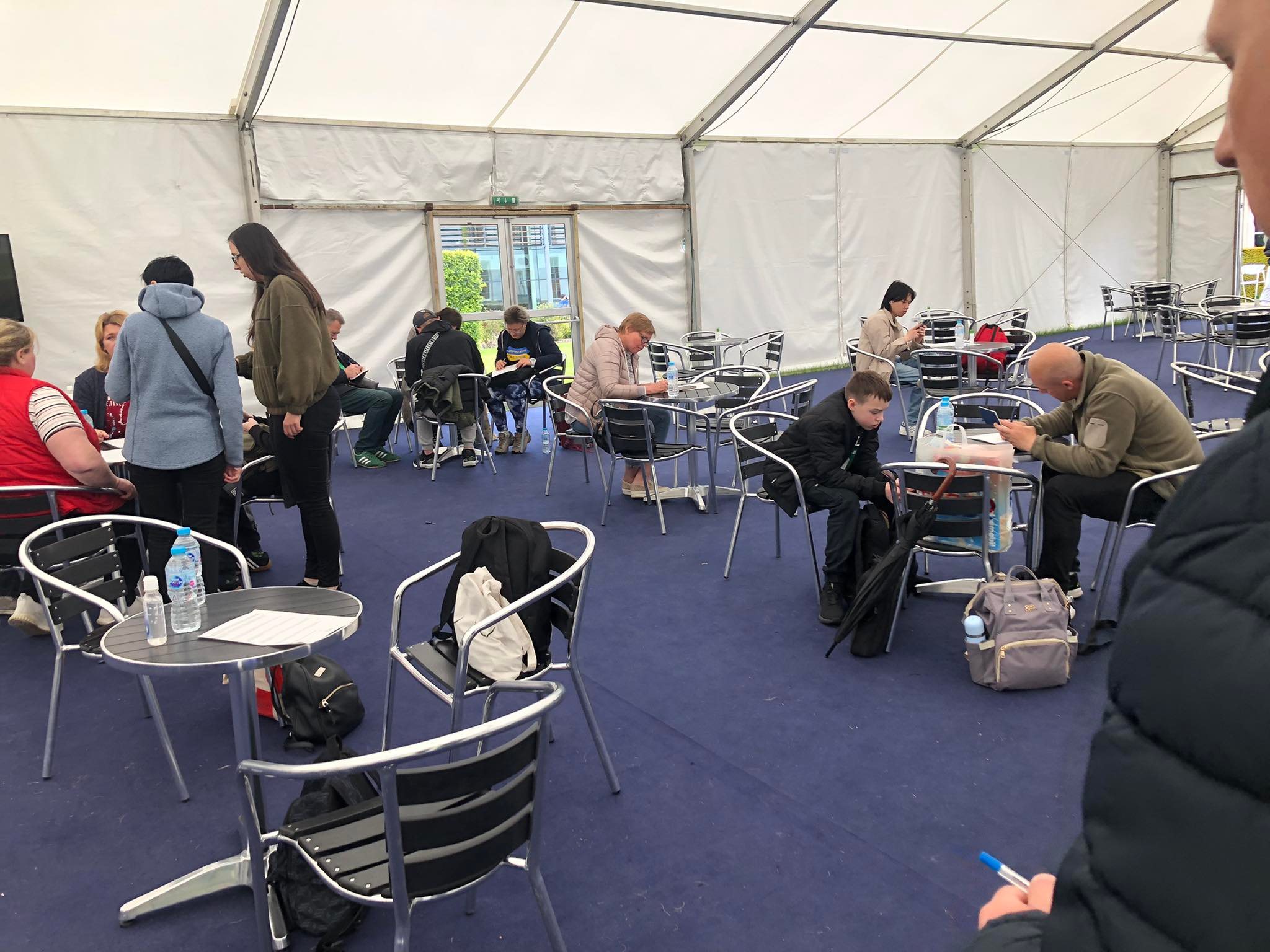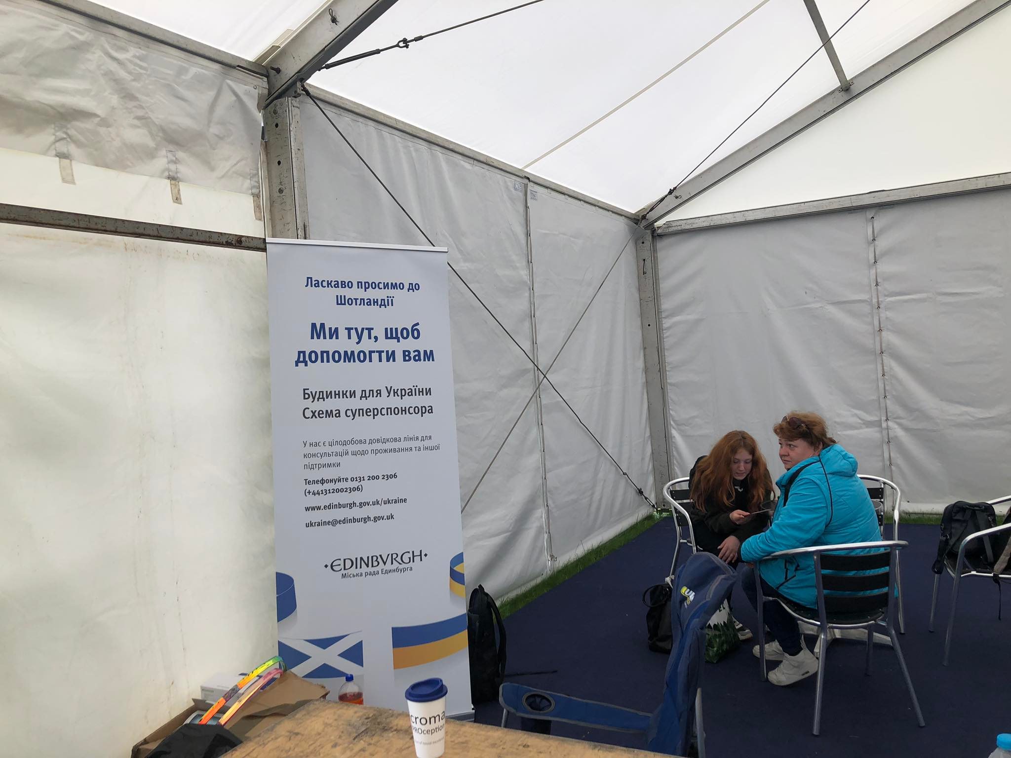 По приезду в Шотландию украинцев регистрируют в хабе-шатре недалеко от аэропорта Эдинбурга. Фото: "Страна"