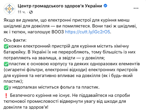 Дело в том, что каждое электронное устройство для курения содержит химическую батарейку. В Украине их не перерабатывают, поэтому большинство из них попадают в свалки, а оттуда — в окружающую среду.