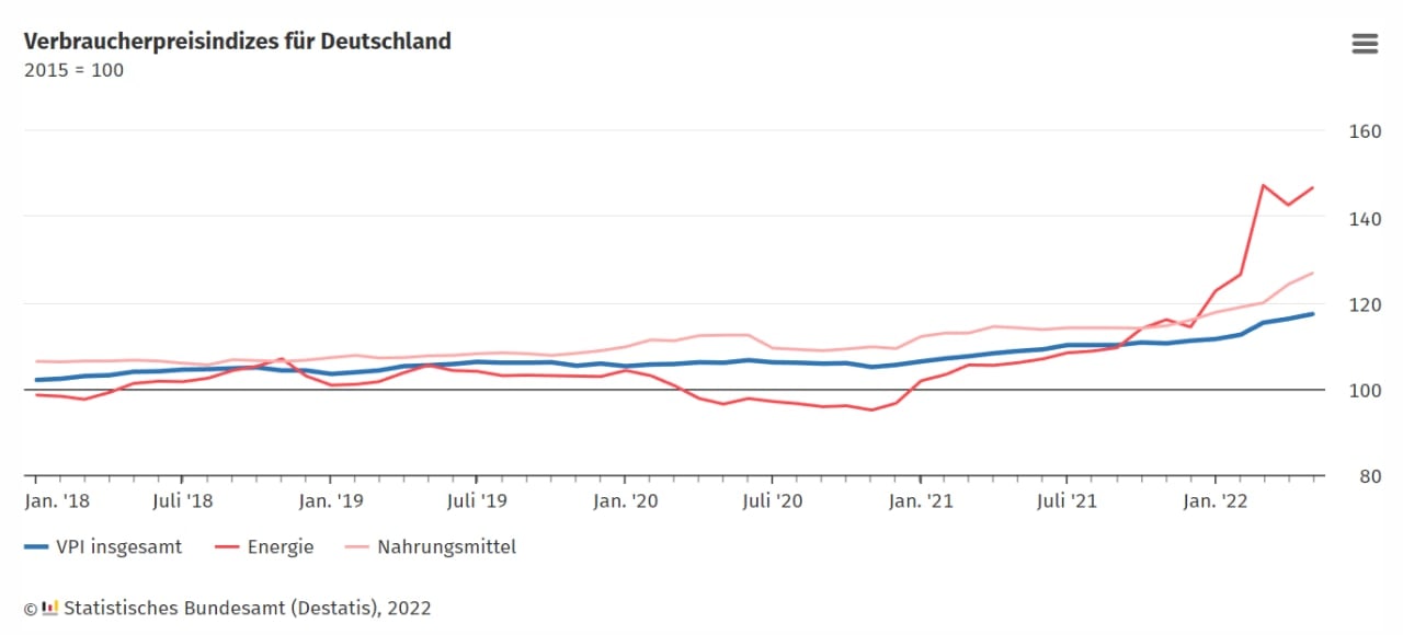 "Последний раз такой высокий уровень инфляции наблюдался зимой 1973-1974 года, когда цены на нефть резко выросли в результате нефтяного кризиса", - заявил глава ведомства Георг Тиль.