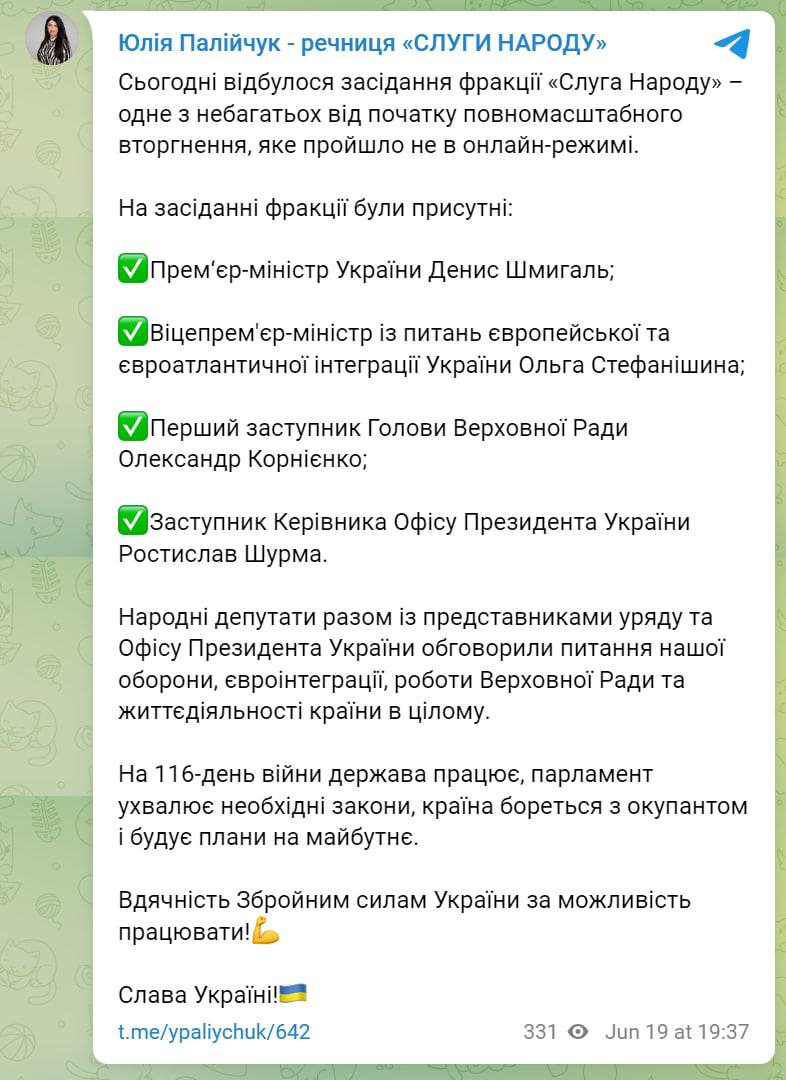 20.06 Фракция "Слуга народа" сегодня провела своё "офлайн-заседание". Заслушивала чиновников, обсуждали вопросы евроинтеграции.