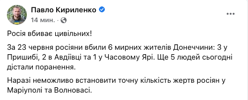 Война в Украине продолжается уже 120-й день. Мы следим за происходящим 23 июня в обновляемом материале.