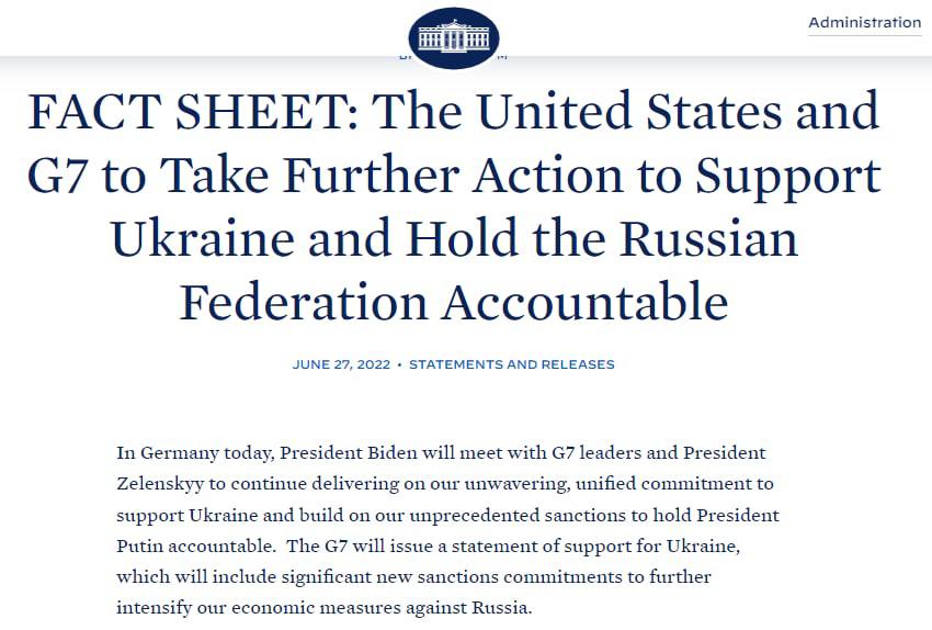 - Лидеры G7 согласуют и расширят санкции, чтобы еще больше ограничить доступ РФ к ключевым промышленным ресурсам, услугам и технологиям.