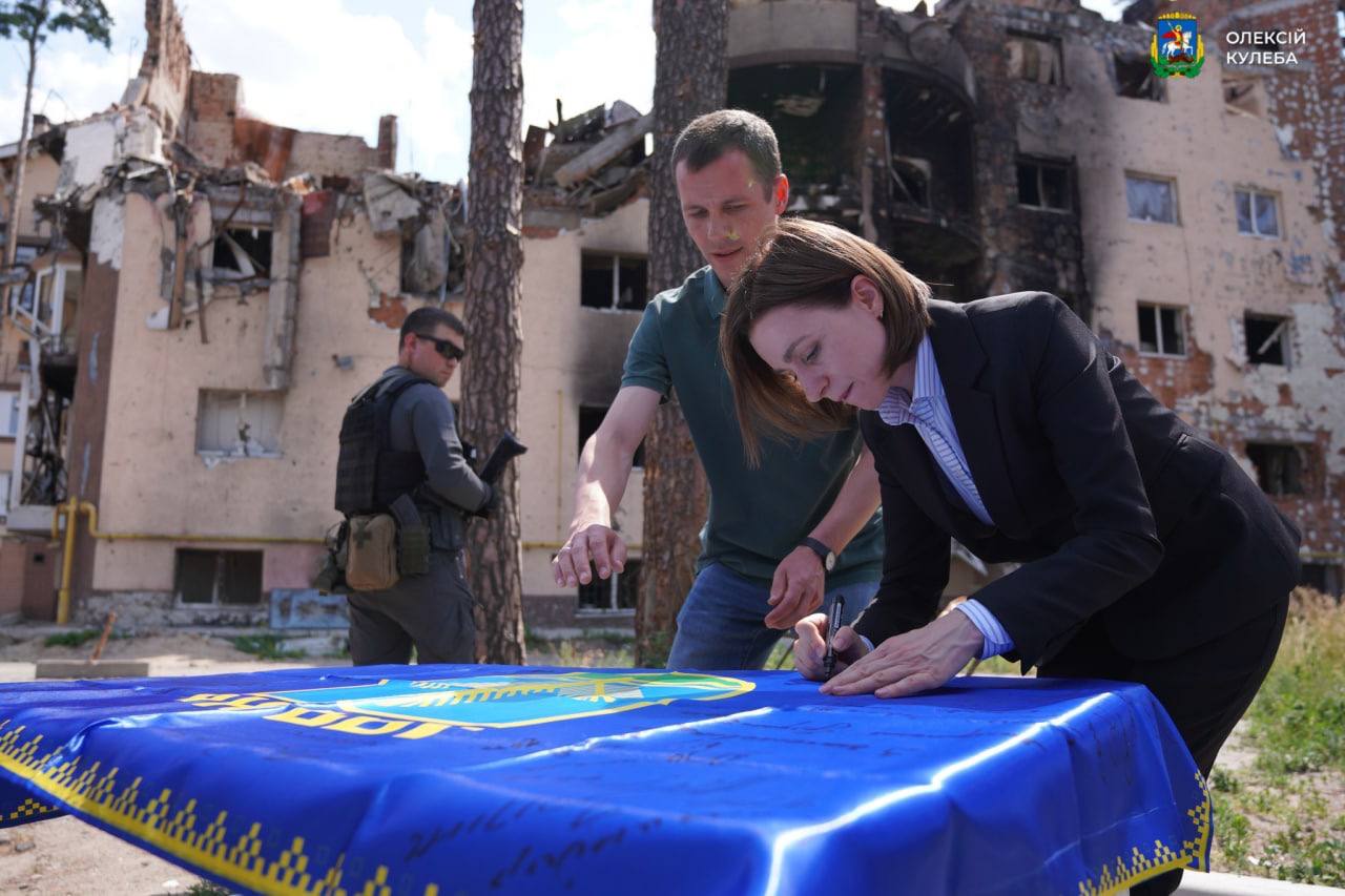 13.02 Президент Молдовы Майя Санду, которая сегодня прибыла с визитом в Украину, уже побывала в Бородянке, Буче и Ирпене под Киевом, сообщил глава Киевской ОВА Алексей Кулеба в Facebook.