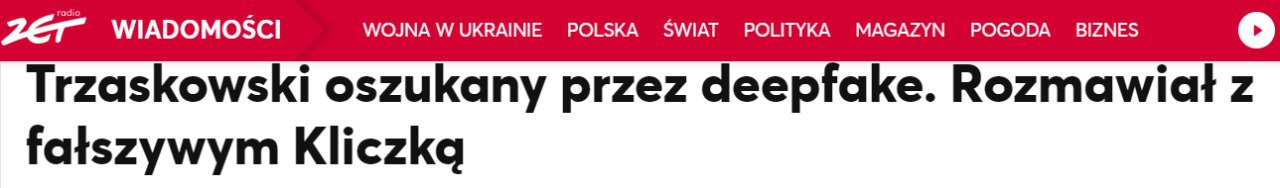 Мэр Варшавы Рафал Тшасковский признался, что тоже разговаривал с дипфейковым мэром Киева Виталием Кличко. Он подтвердил свой разговор с "мэром" Киева в начале июня.