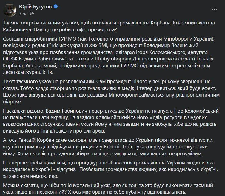 Cлухи о лишении гражданства Корбана в качестве угрозы распространяет Офис президента - Бутусов