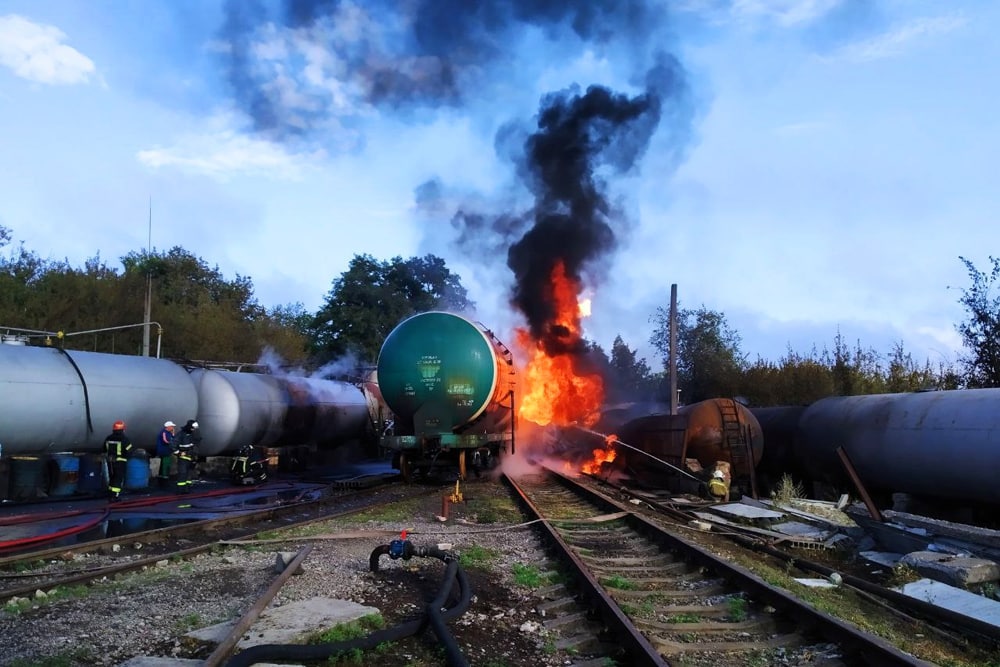 Сообщается, что горели 6 стационарных цистерн с топливом, никто не пострадал.