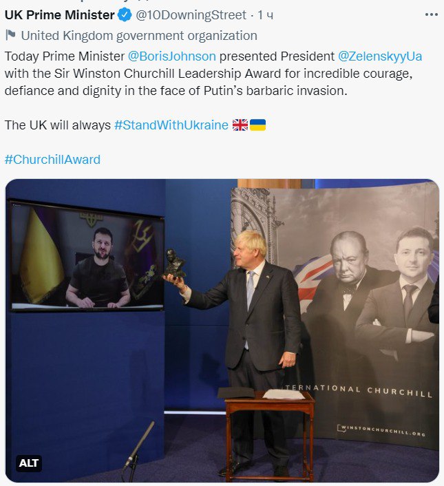 20:15 Владимир Зеленский получил премию Уинстона Черчилля за лидерство.
