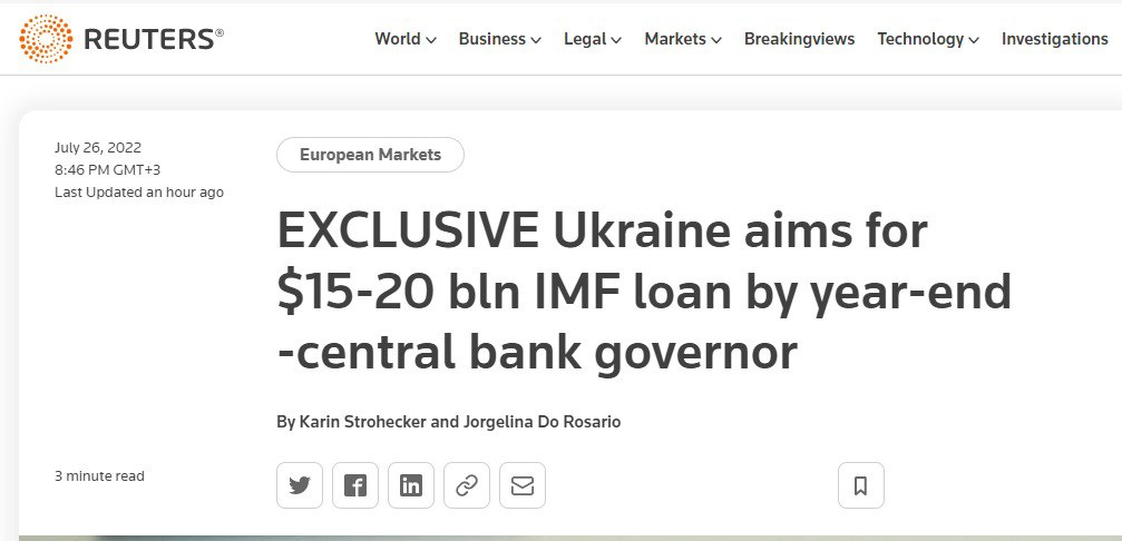 21:55 Украина намерена до конца года заключить сделку с МВФ по программе на сумму 15-20 миллиардов долларов.