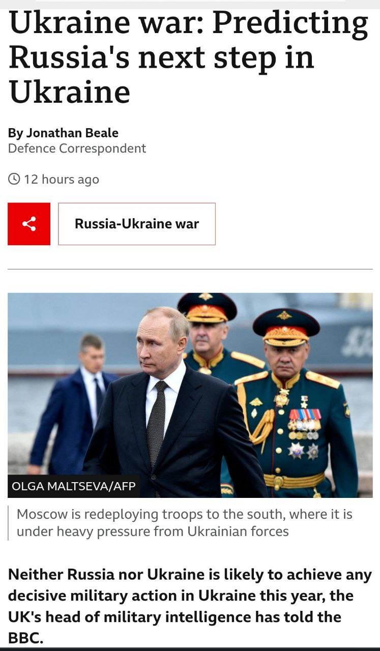 08:14 Россия и Украина вряд ли добьются каких-либо решительных военных успехов в этом году, заявил Би-би-си глава военной разведки Великобритании Джим Хоккенхалл.