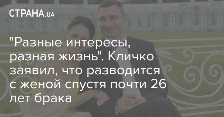 "Разные интересы, разная жизнь". Кличко заявил, что разводится с женой спустя почти 26 лет брака