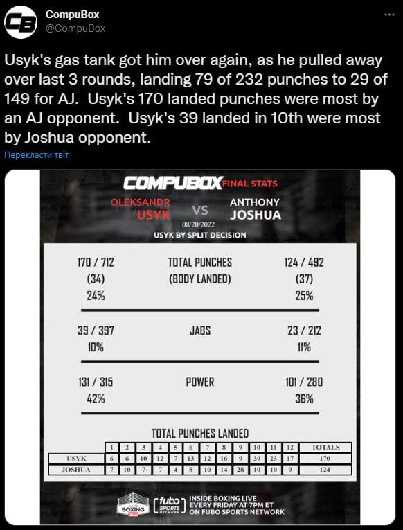 Видно, что если Усик пробивает Джошуа в голову, то британец старается работать по корпусу.