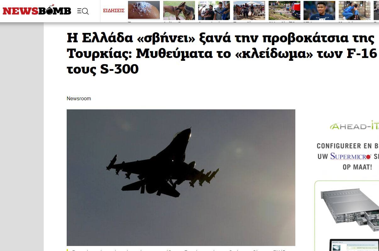 "Самолеты ВВС Турции совершили провокацию, чтобы выяснить место расположения зенитно-ракетного комплекса С-300 на Крите. Это произошло 23 августа к западу от Родоса на высоте 10 тысяч футов, когда радары С-300 "захватили" турецкие F-16", - цитирует издание греческих военных.