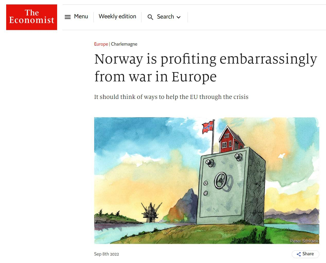 Норвегия "смущающе наживается на войне в Европе" пишет британский журнал The Economist.