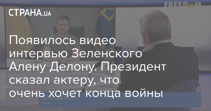 Появилось видео интервью Зеленского Алену Делону. Президент сказал актеру, что очень хочет конца войны