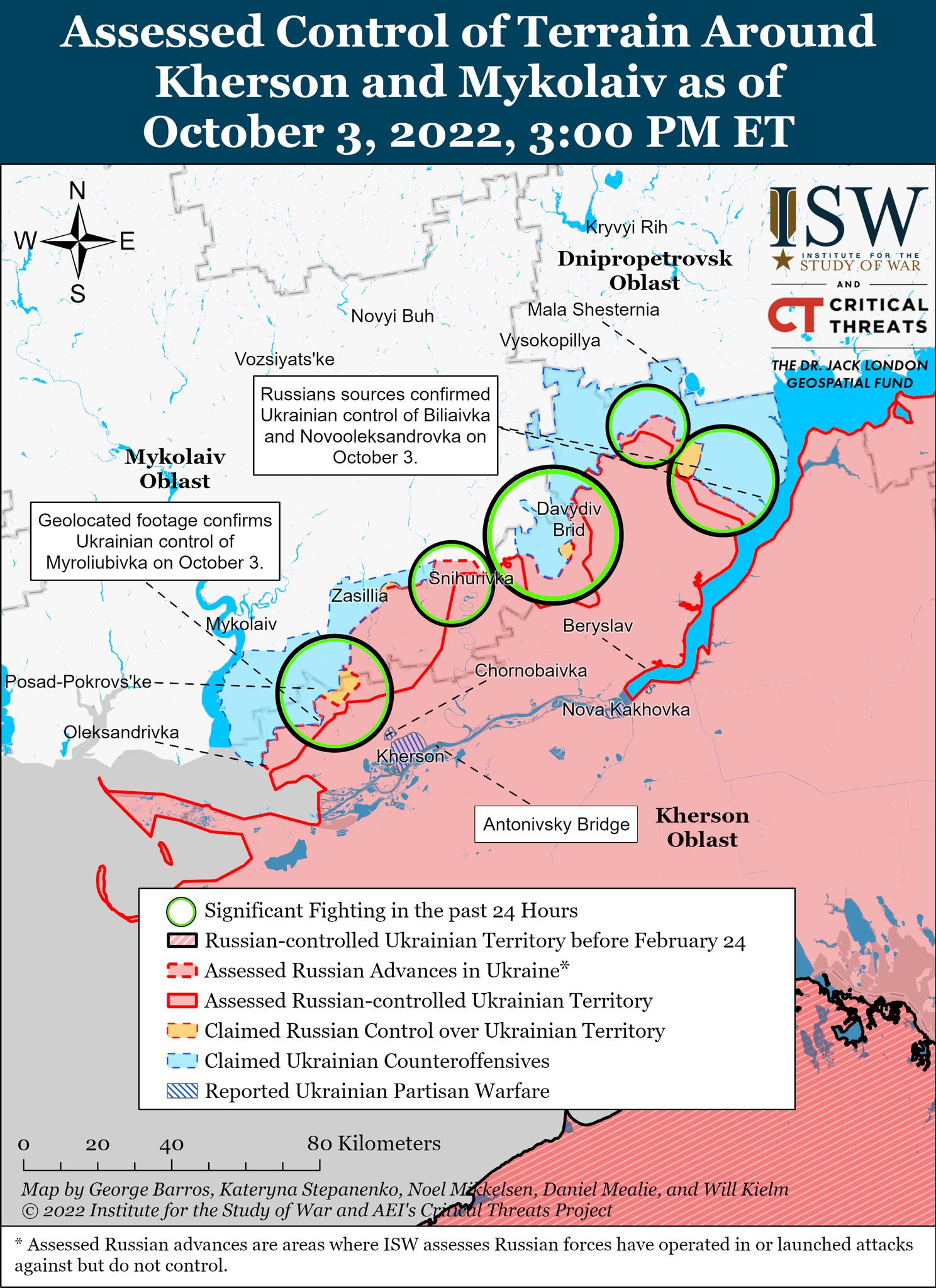2. В Херсонской области украинские силы продолжали продвигаться на юг в направлении Новой Каховки, и геолокация показала, что они освободили Михайловку, Гавриловку и Новоалександровку, а также Крещеновку.