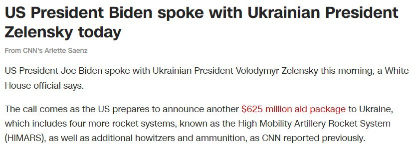 Он подтвердил, что во время разговора было сообщено о выделении Штатами военной помощи Украине на $625 млн.