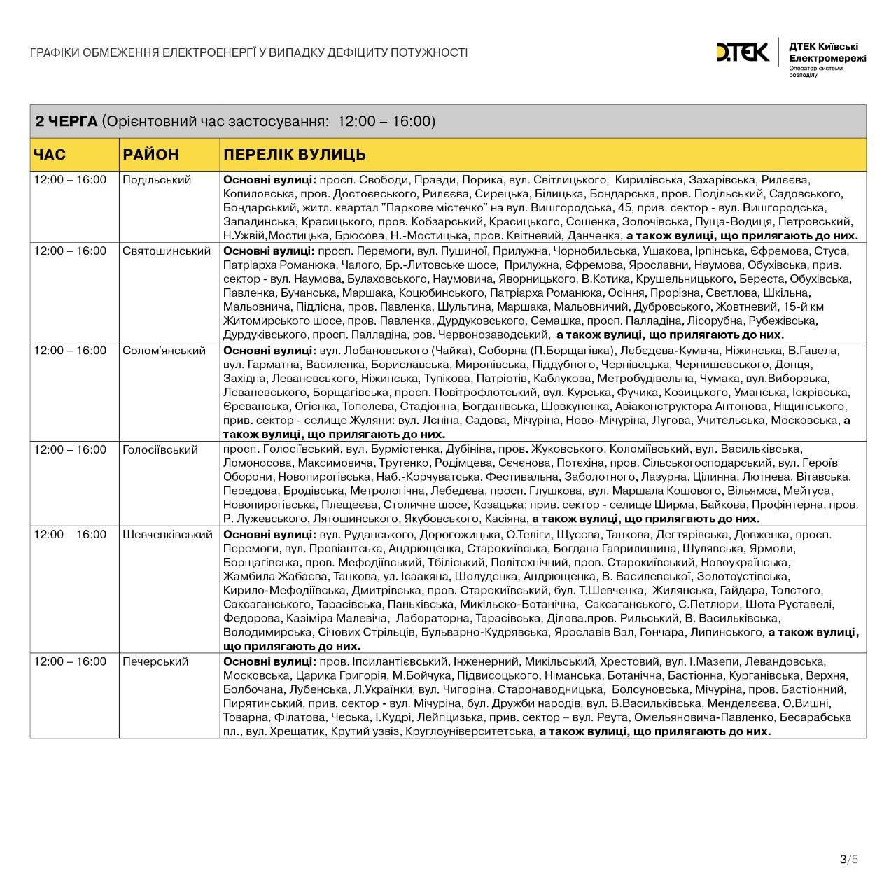 Также появился график веерных отключений в Киеве с тремя очередями. Сейчас, как заявила КГГА, будут отключать третью очередь.