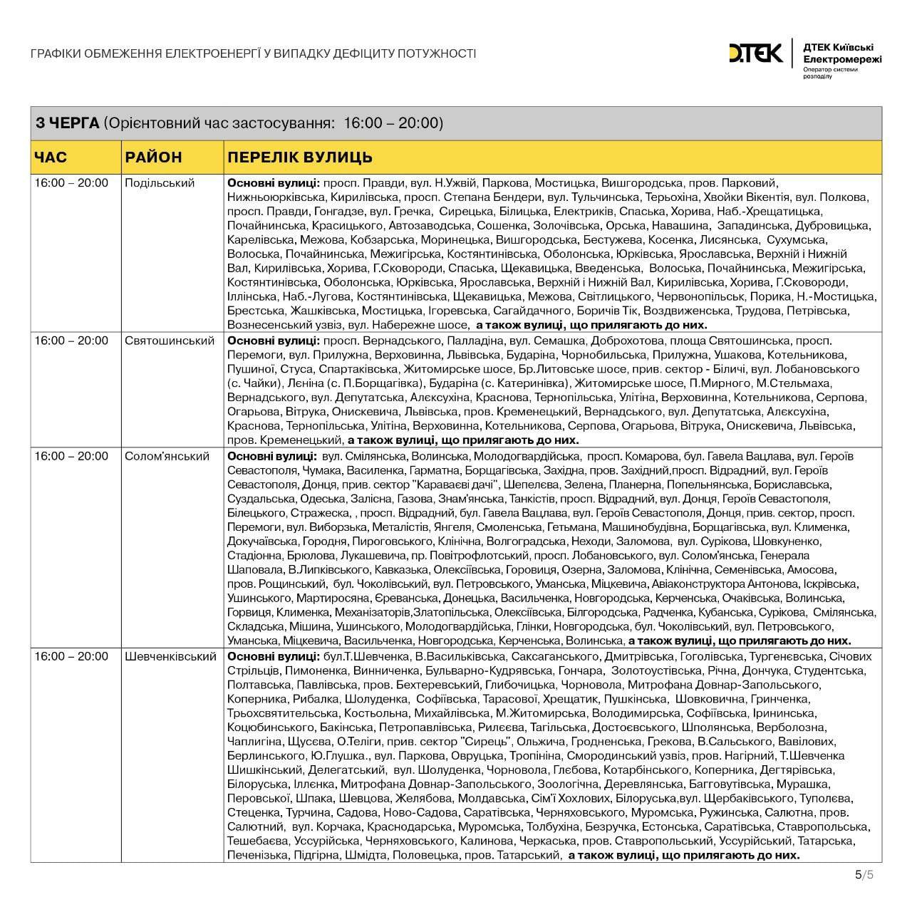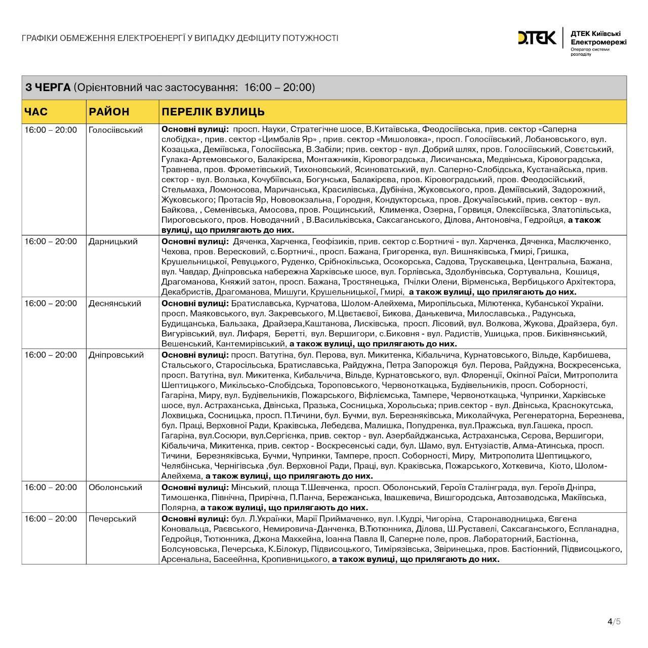 В Киеве и области начались веерные отключения электроэнергии. Полный график трёх очередей в столице