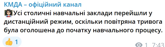 Все столичные учебные заведения 17 октября перешли на дистанционный режим, поскольку воздушная тревога была оглашена до начала учебного процесса (в 06:23).