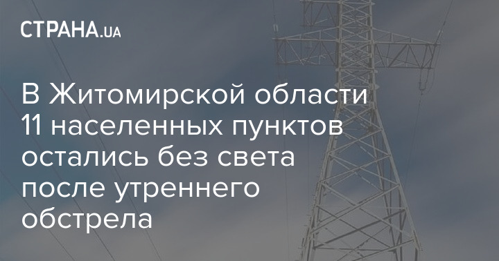 11 населенных пунктов Житомирской области остались без света в результате утреннего обстрела объекта энергетической инфраструктуры.